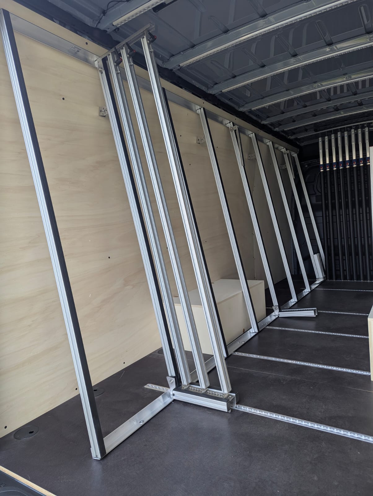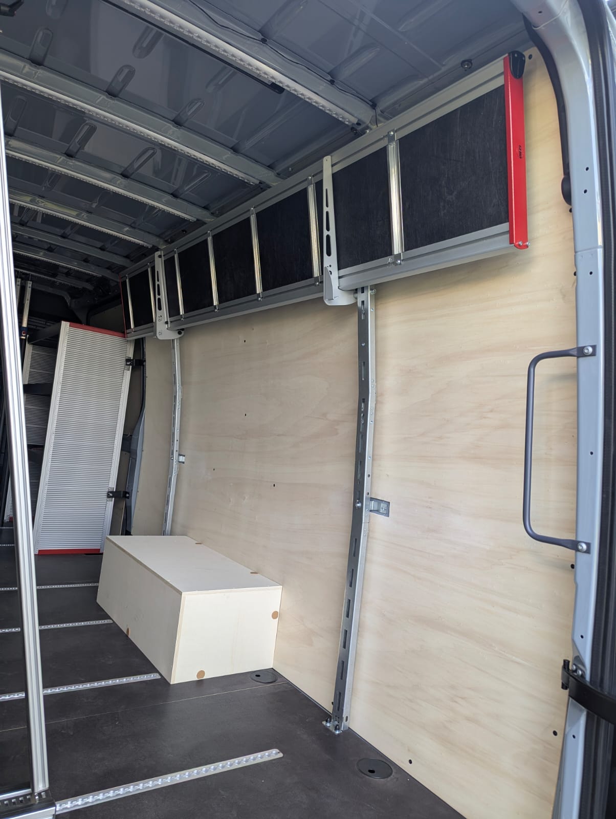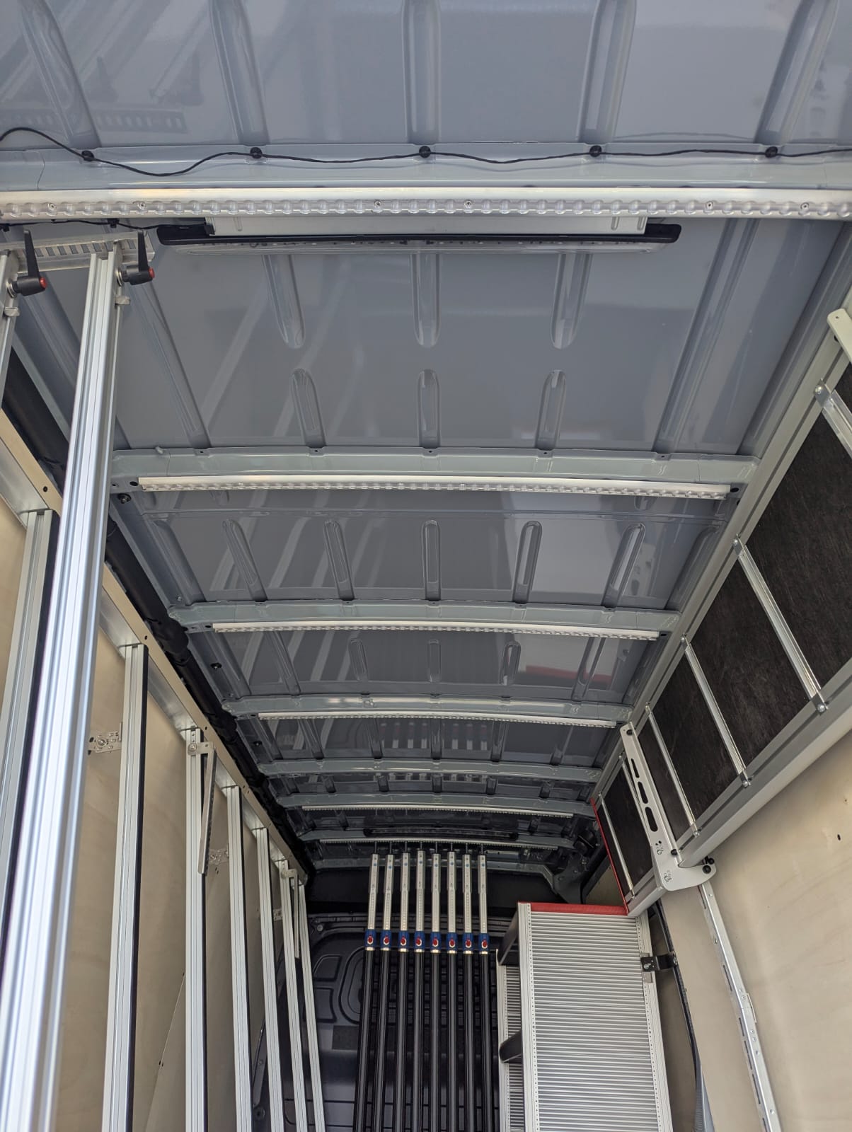 Ce Sprinter a été entièrement équipé d’un débris de verre à l’intérieur et à l’extérieur, en combinaison avec une galerie de toit, un marchepied et des porte-bagages GEMA. Le fourgon a également été équipé à l’intérieur d’un onduleur, d’un éclairage intérieur supplémentaire et d’un assortiment de barres de fixation pour sécuriser le chargement.
