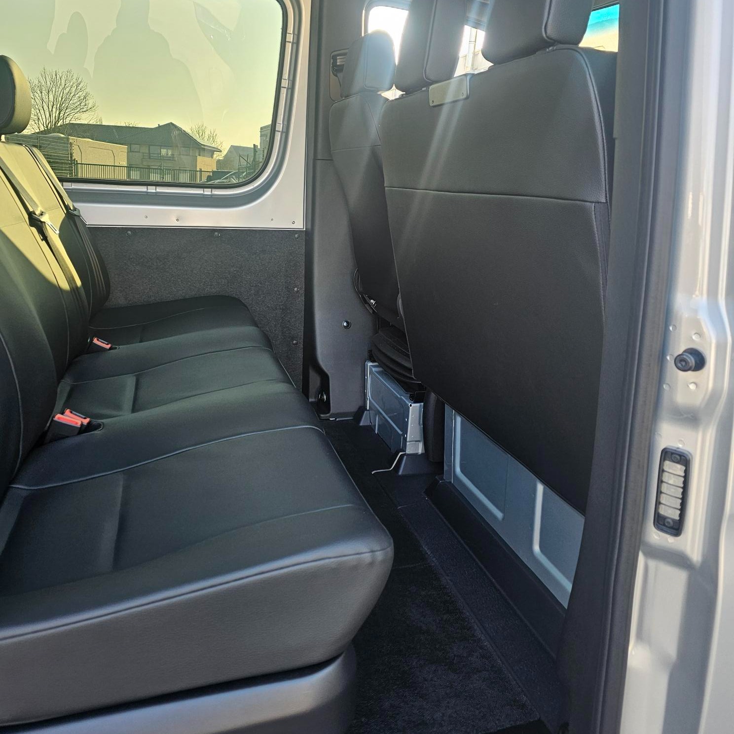 Voici un exemple de cabine double Mercedes Benz standard 2 places en finition skaï.