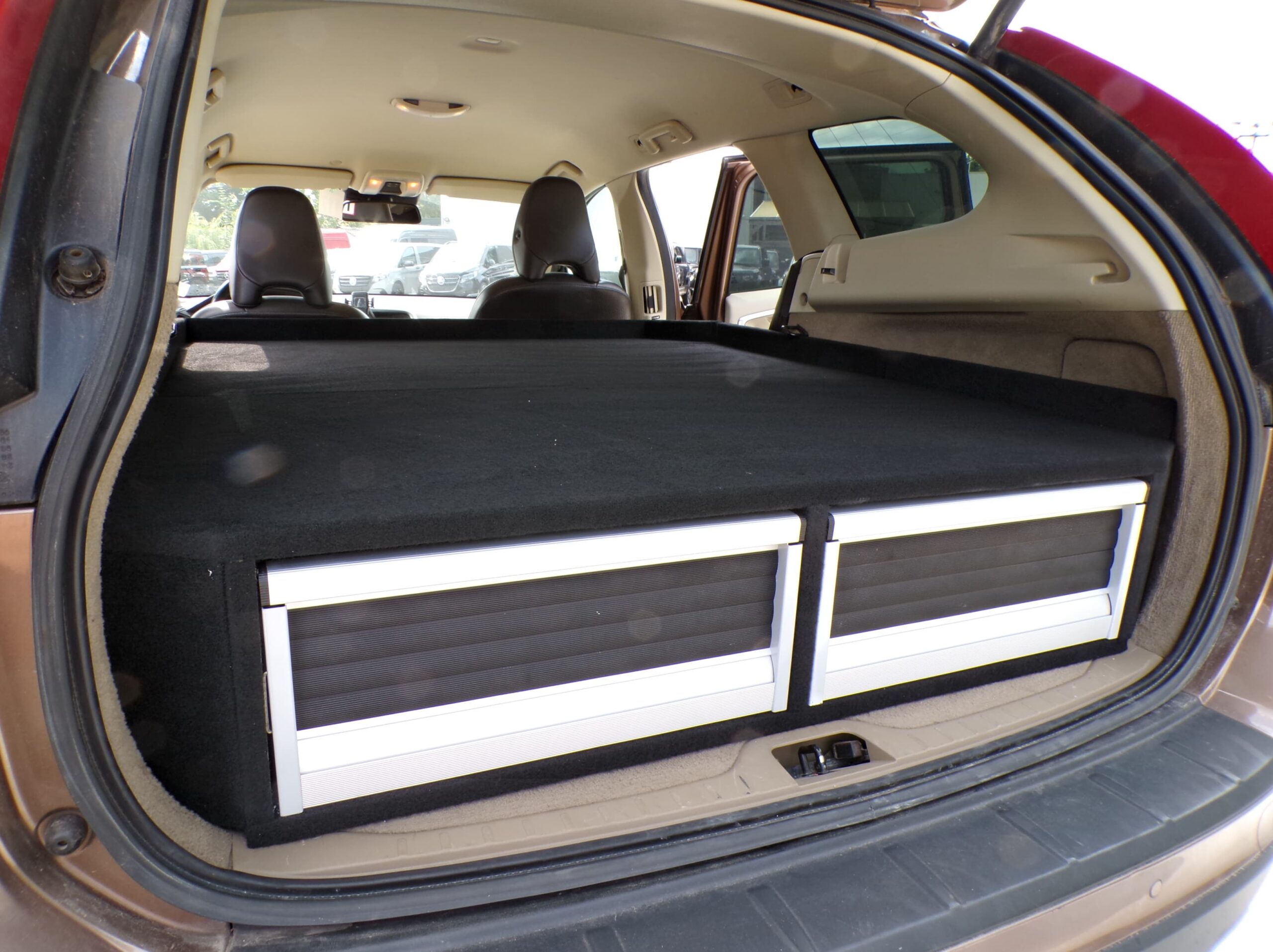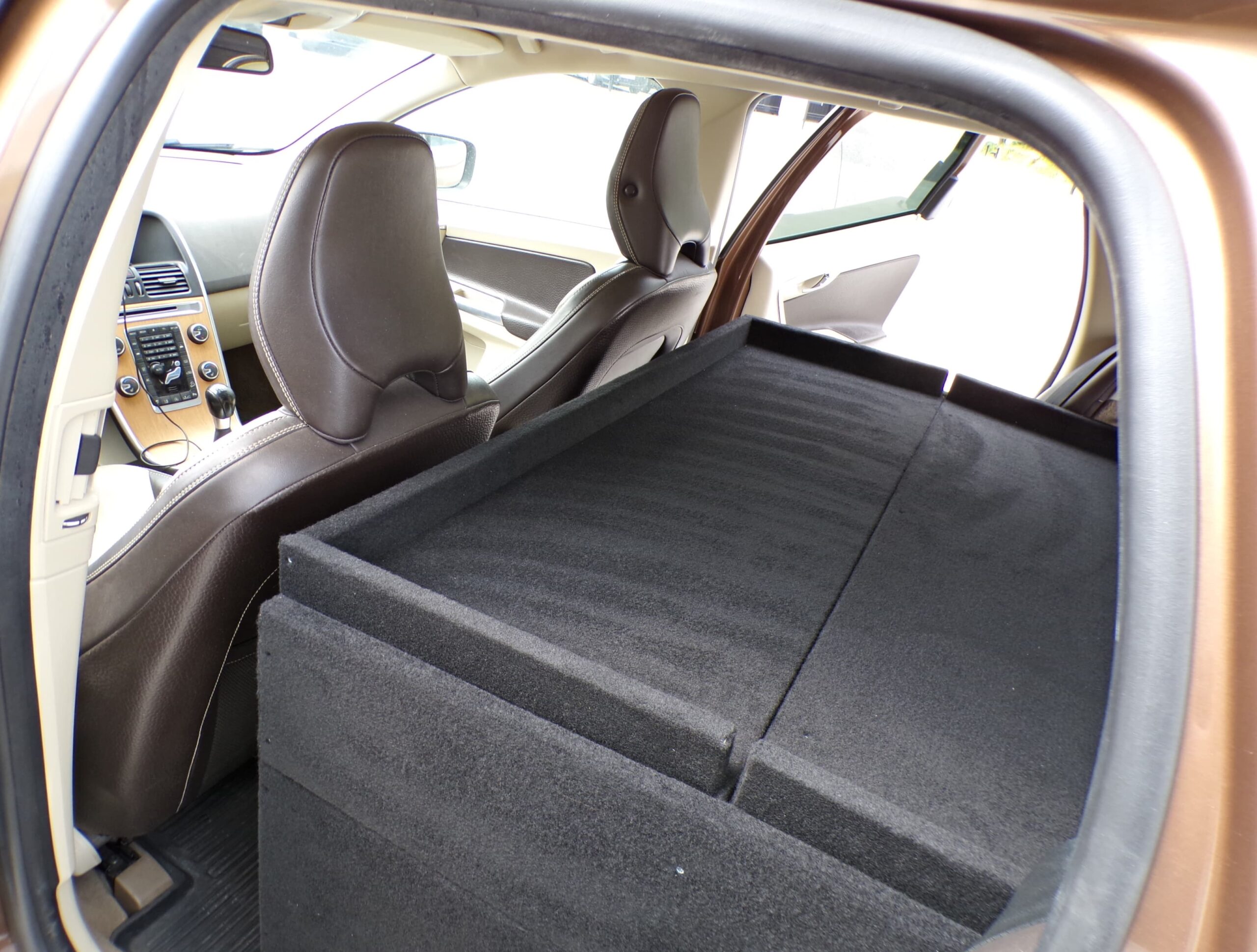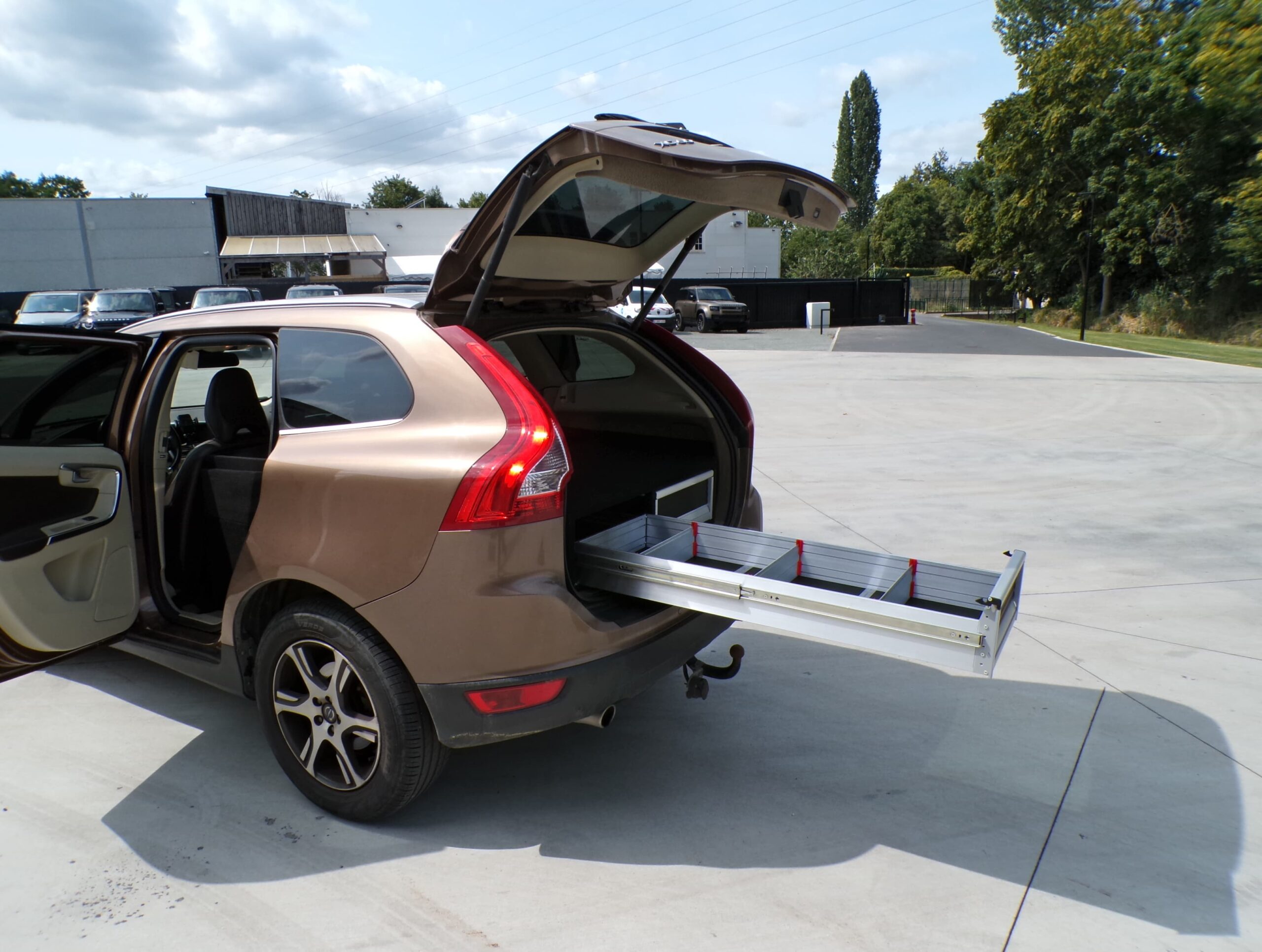 Cette Volvo X60 a été transformée de voiture de tourisme en cargaison légère à deux places. En outre, la voiture a été équipée d’un double plancher de chargement avec des tiroirs supplémentaires pour offrir plus d’espace de rangement.