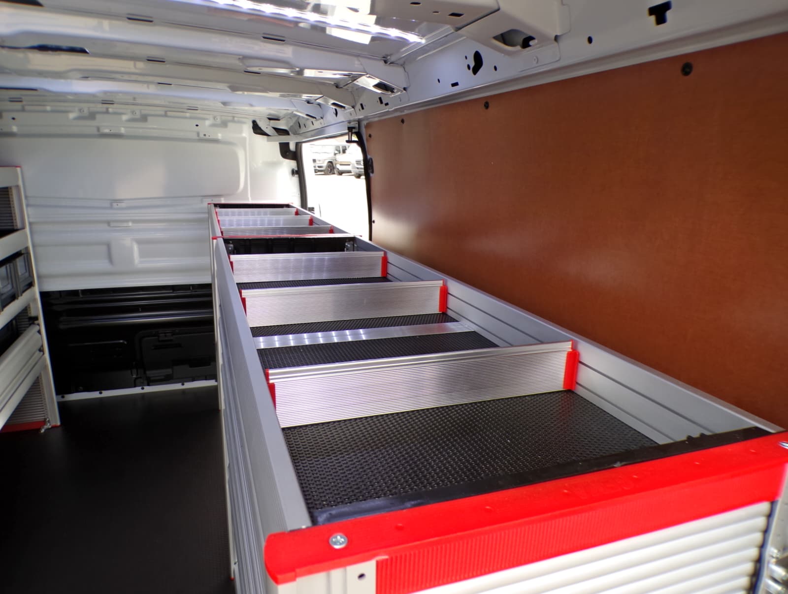 Het voertuig werd uitgerust met een GEMA inrichting op maat. Gema is vervaardigt uit 100% geëxtrudeerd aluminium en kan volledig op maat ontwikkeld worden, waarbij zijn unieke eigenschappen van bijzonder laadvermogen behouden blijft.